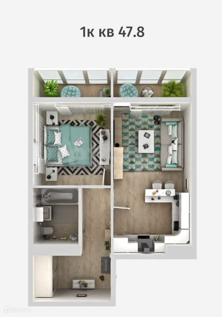 Общая площадь 47.8 м2