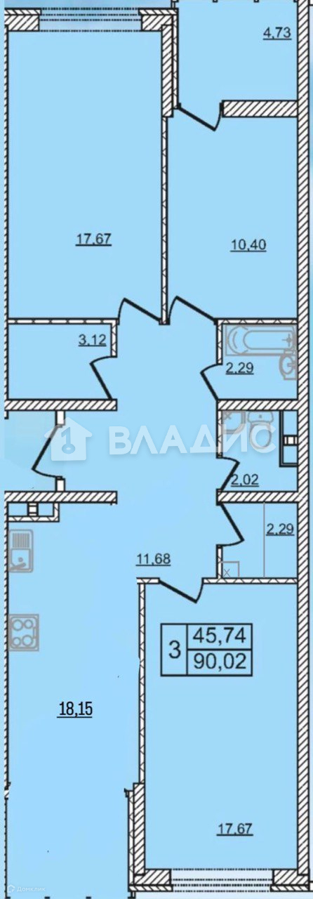 Общая площадь 90 м2