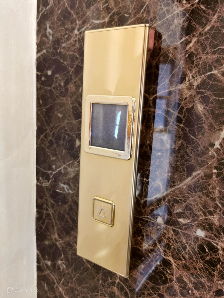 С шиком выполнена дизайнерское решение входной группы, в цвет золота двери и кнопки лифтов, очень красиво смотрятся стеклянные вставки.