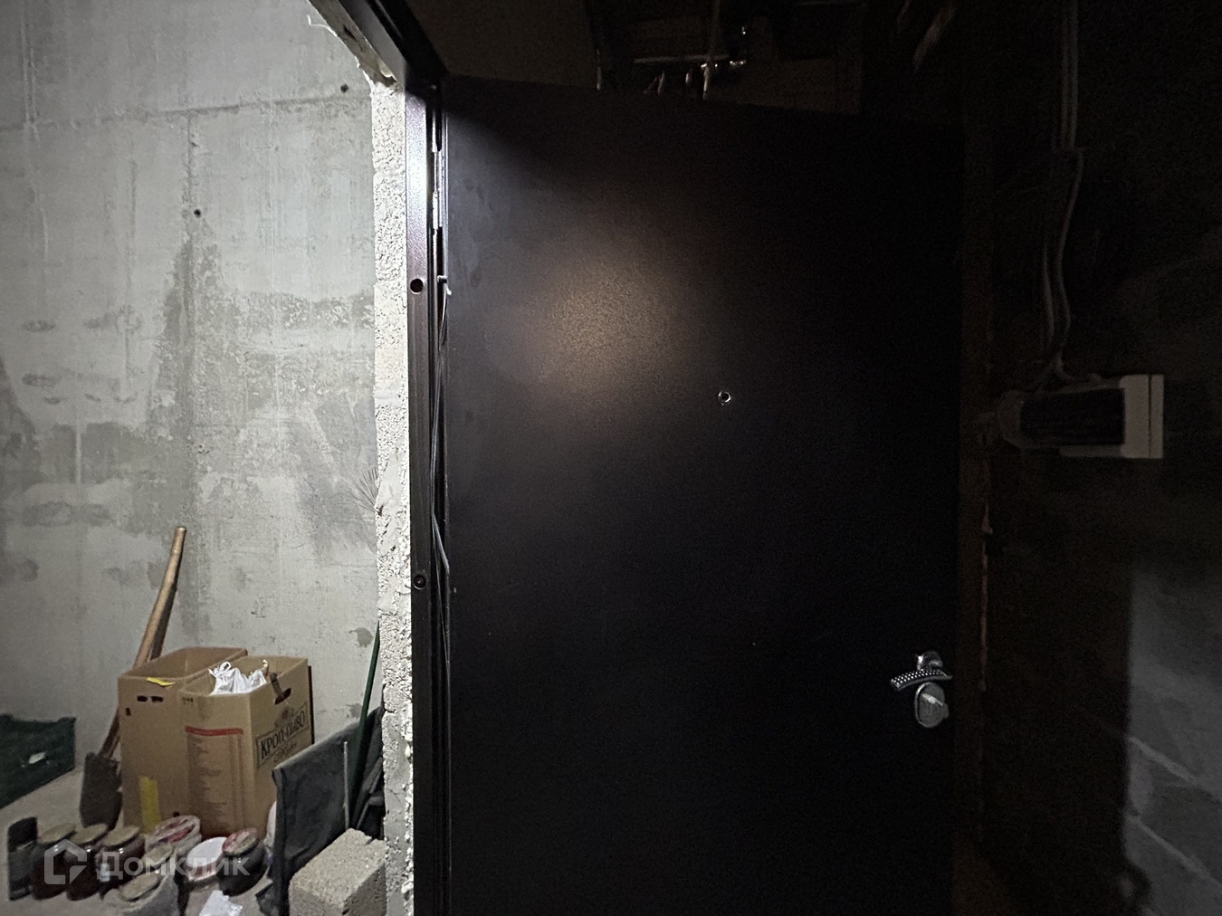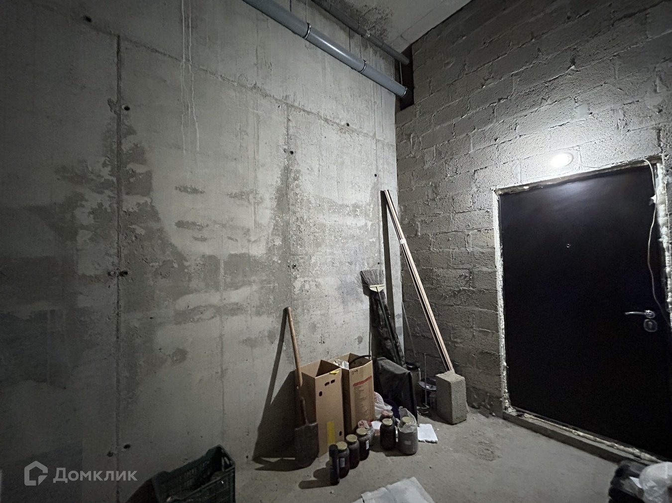 Проведены вентиляция, свет, вода, установлена дверь.