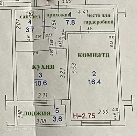Жилая площадь 16.4 м2