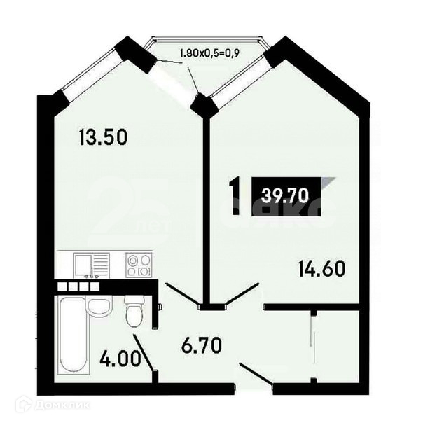 Балкон, лоджия 1 балкон