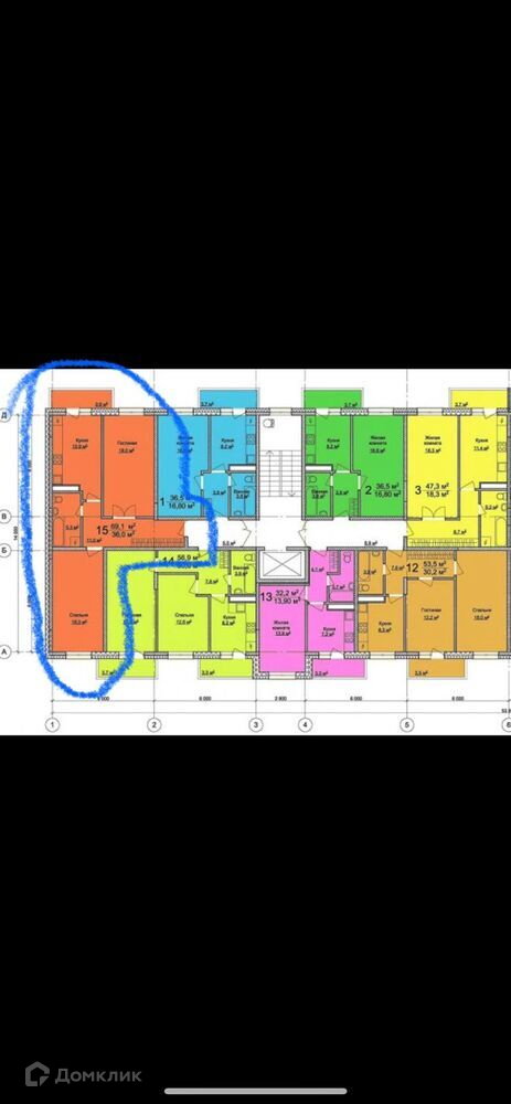 Общая площадь 69 м2