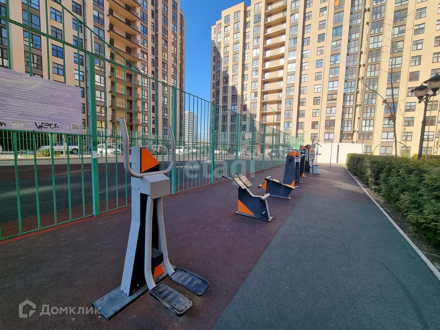 В комплексе закрытая территория, имеются детские и спортивные площадки, фонтаны, зоны для прогулки и барбекю, двор очень зеленый и уютный.