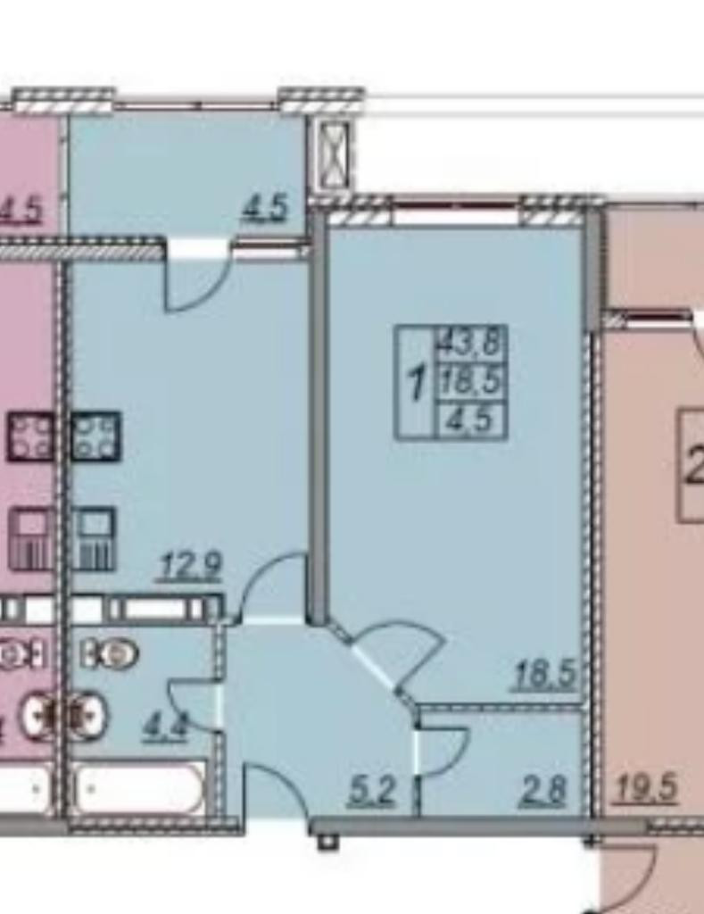 Жилая площадь 18.5 м2