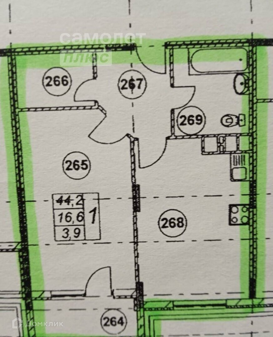 Общая площадь 44.6 м2