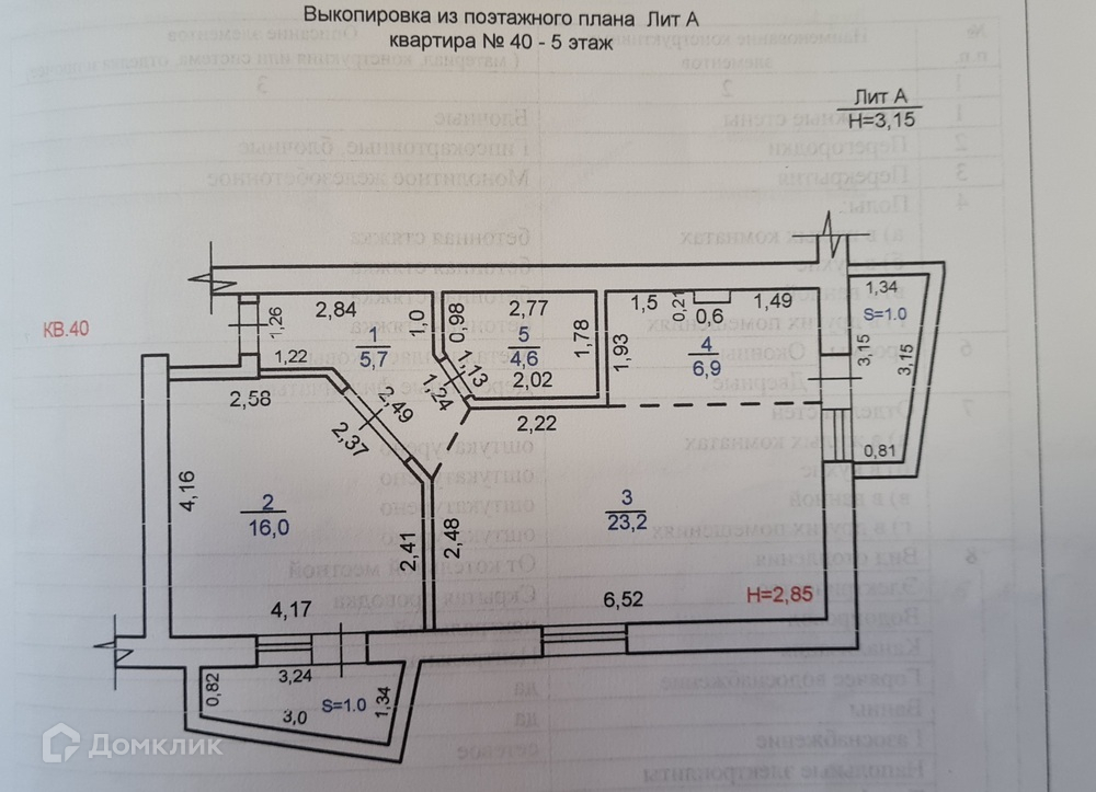 - Высота потолка 2.85 м.