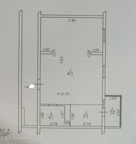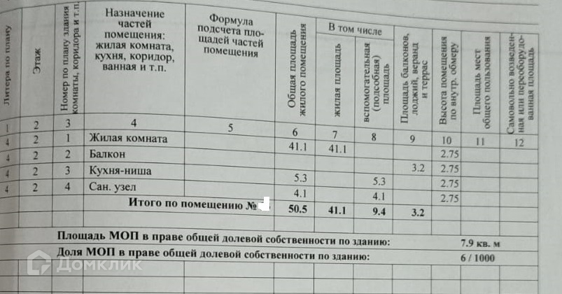 Жилая площадь 41.1 м2