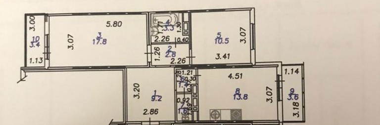 Отличная планировка : окна на две стороны, просторная кухня 13,8 кв.м, комнаты 10,5 кв.м и 17,8 кв.м,санузел раздельный, два балкона.