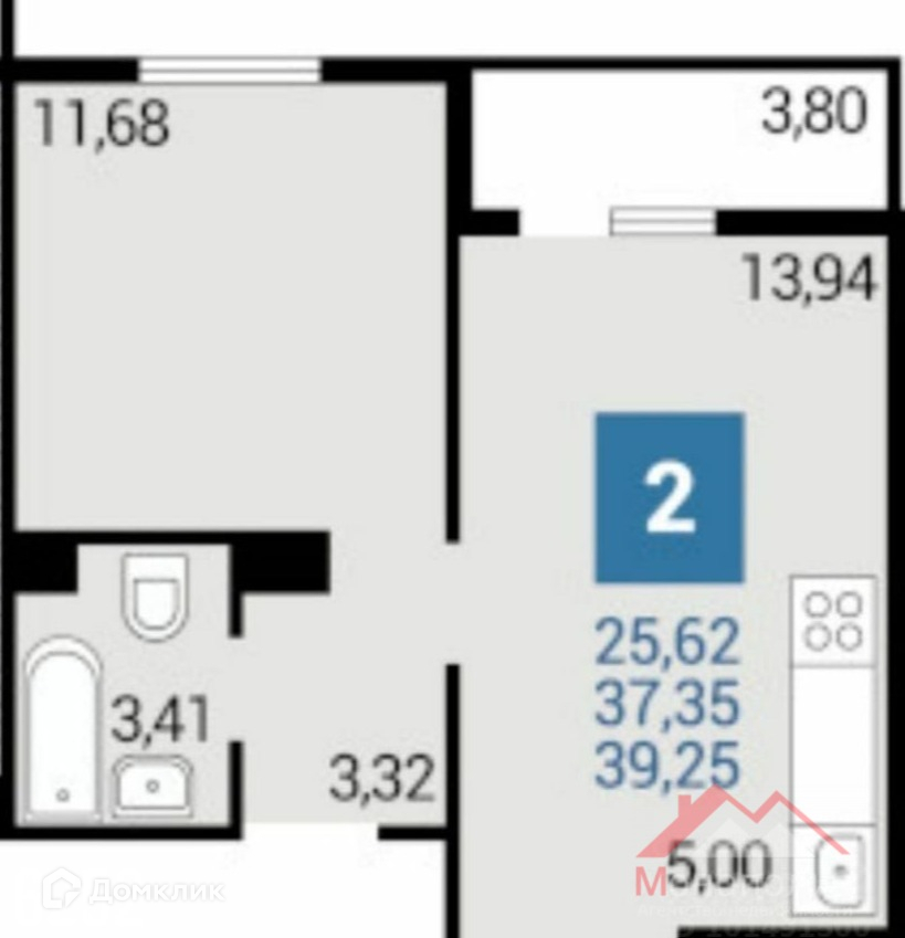 Общая площадь 39 м2