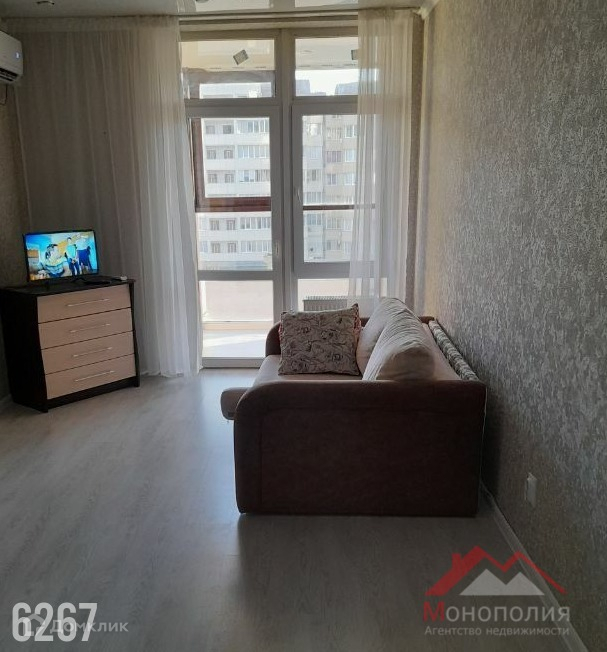 Продаётся студия  с панорамными окнами в новом доме комфорт класса. Квартира полностью оснащена всей необходимой мебелью и бытовой техникой. Дом расположен рядом с центральной улицей, где расположены все магазины.   До моря и парка Ореховая Роща  шаговая доступность.