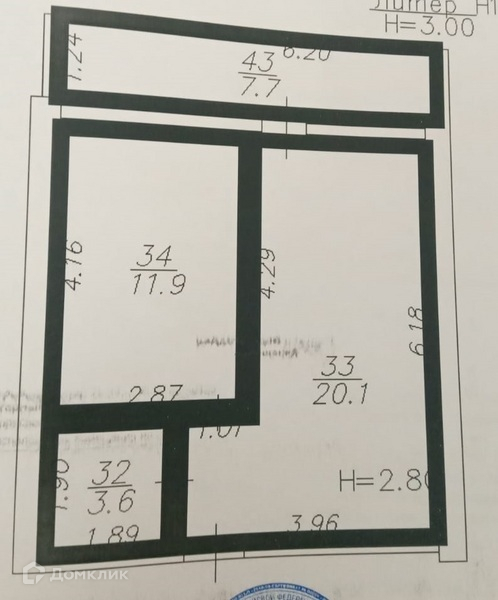 Общая площадь 43.3 м2