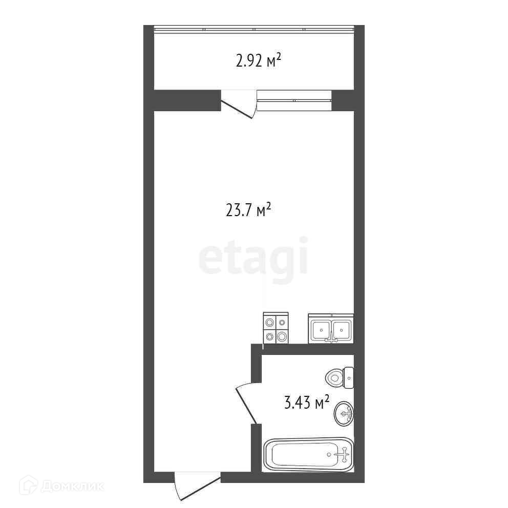 - совмещенный санузел 3,43 кв.м;