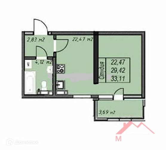 Общая площадь 33.1 м2