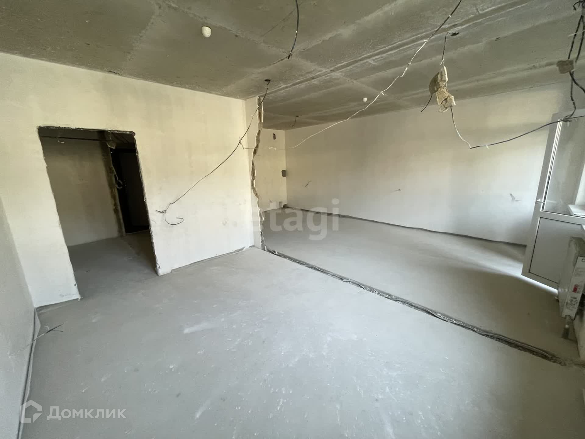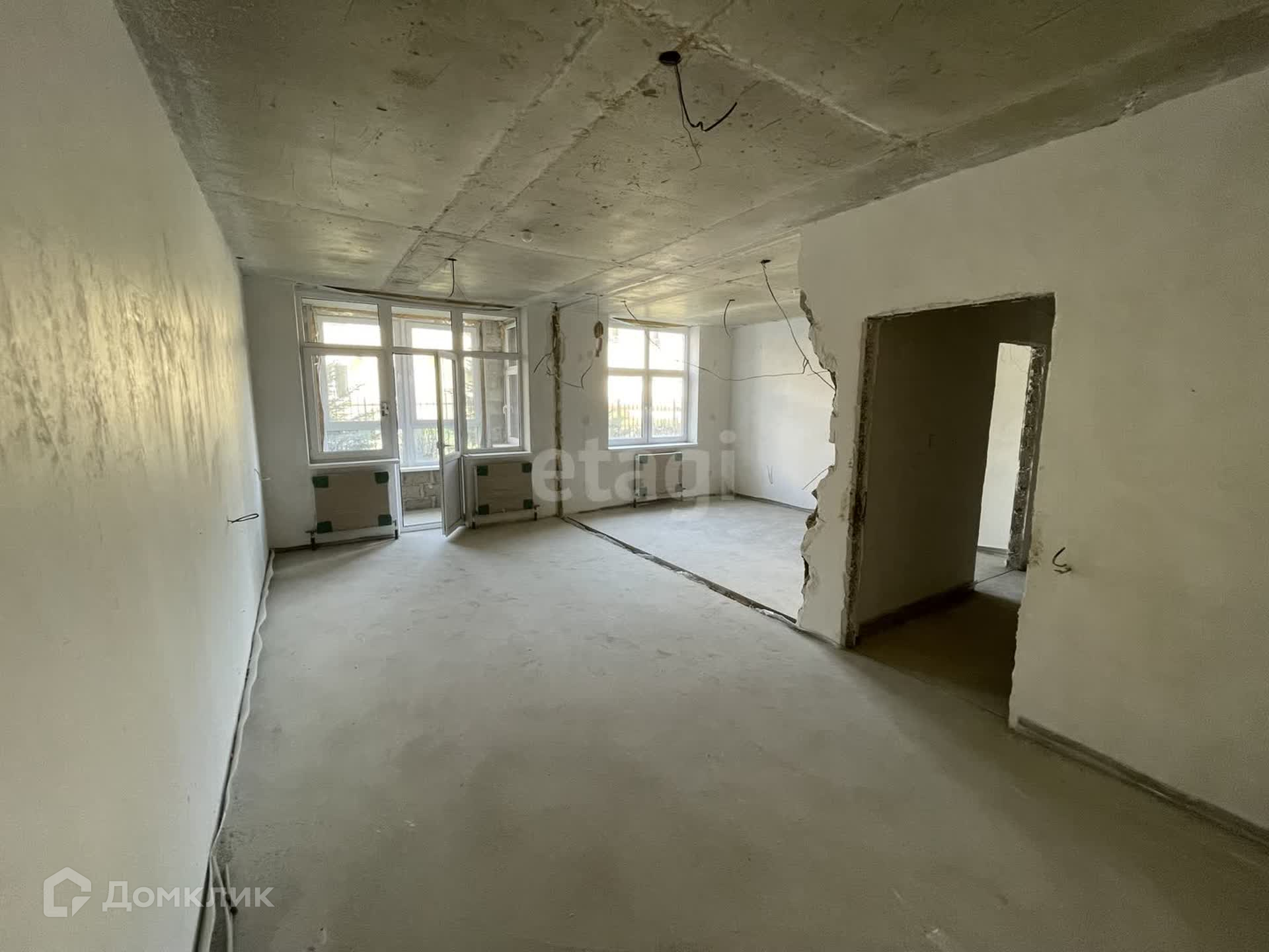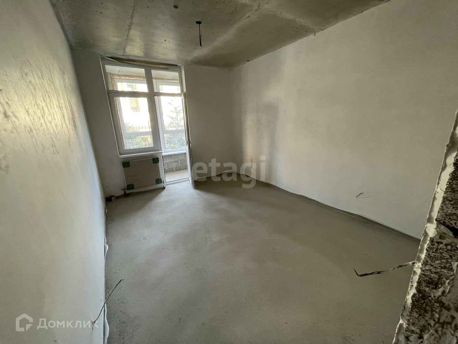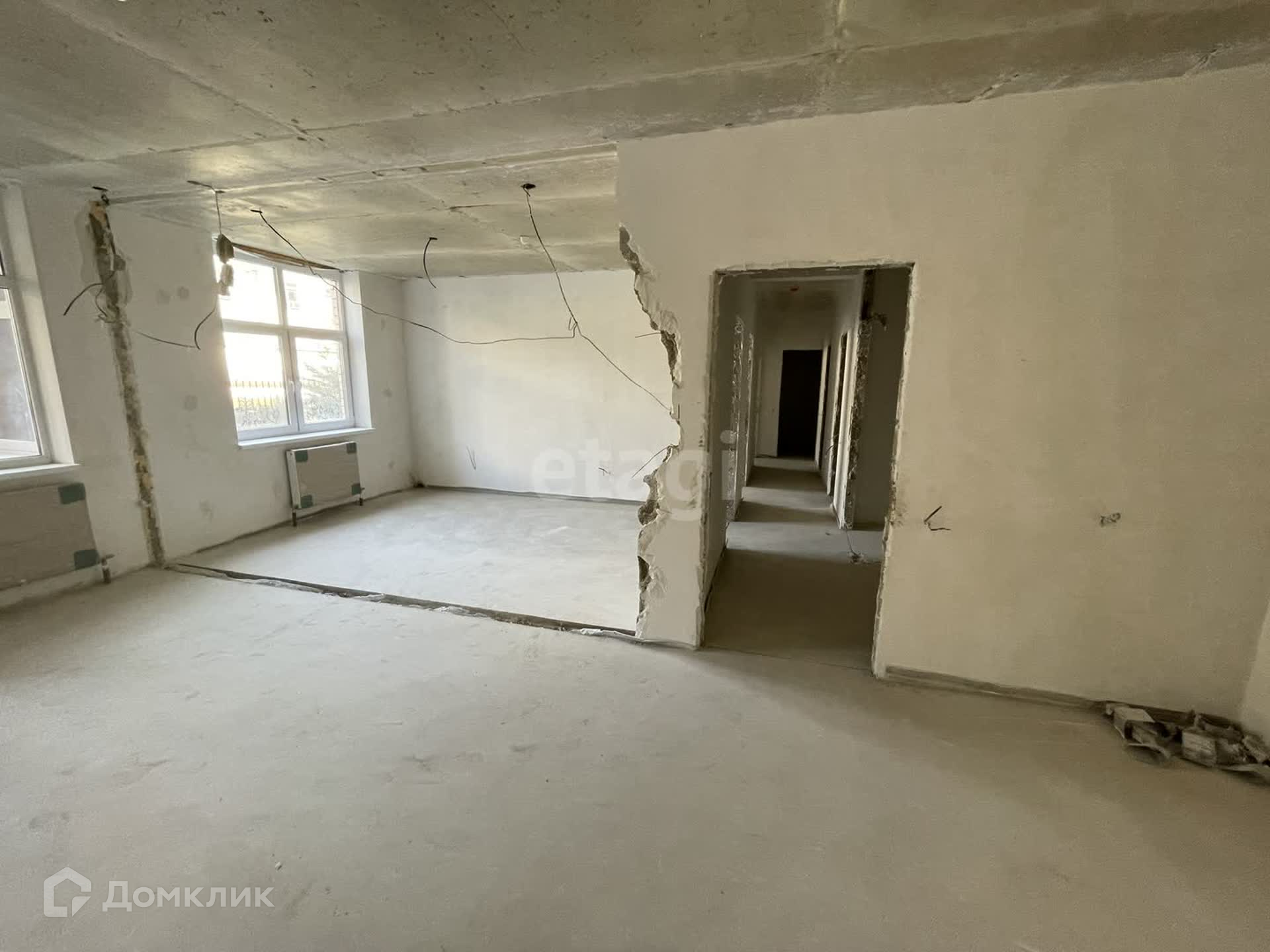 Сделана качественная стяжка пола, стены оштукатурены и готовы под отделку. Отопление центральное.