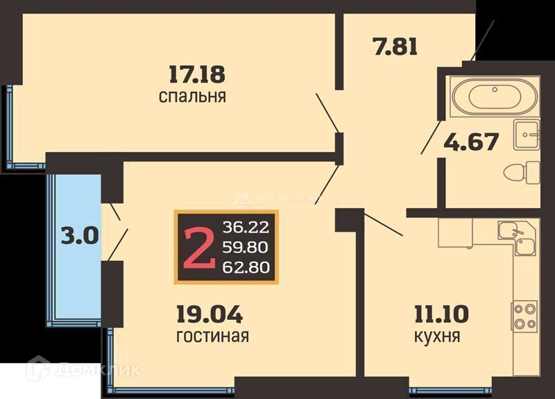 Общая площадь 63 м2