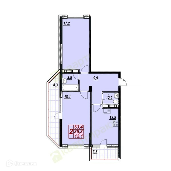 Количество комнат 2