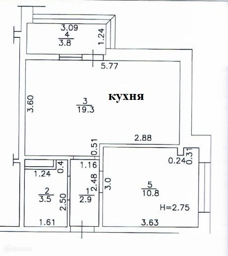 Площадь кухни 19.3 м2