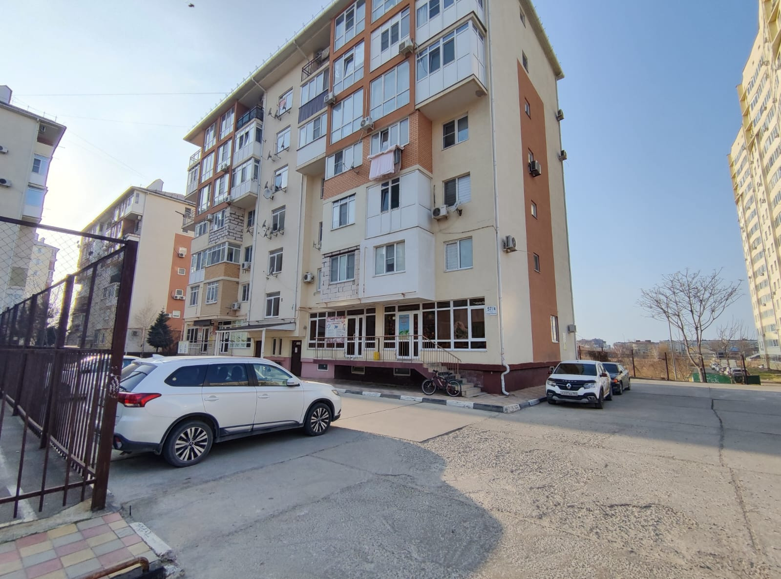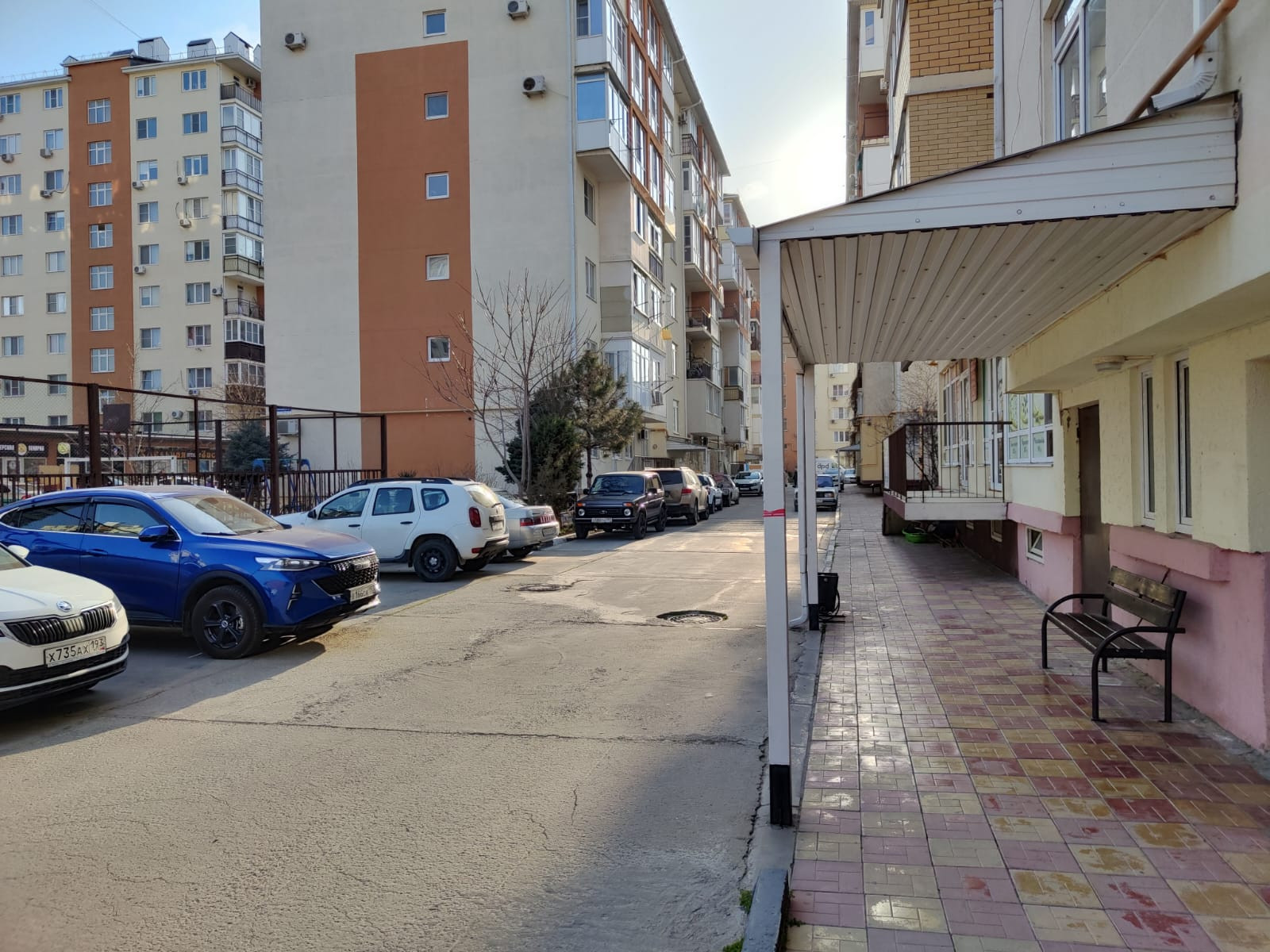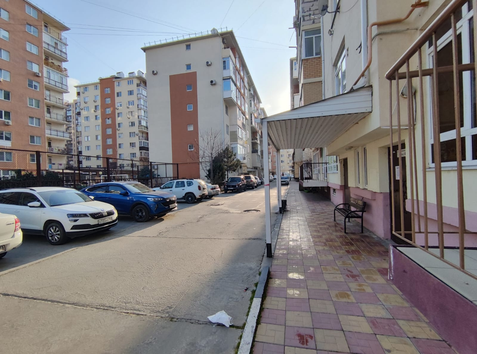 Во дворе парковка для жителей дома, детские и спортивные площадки.