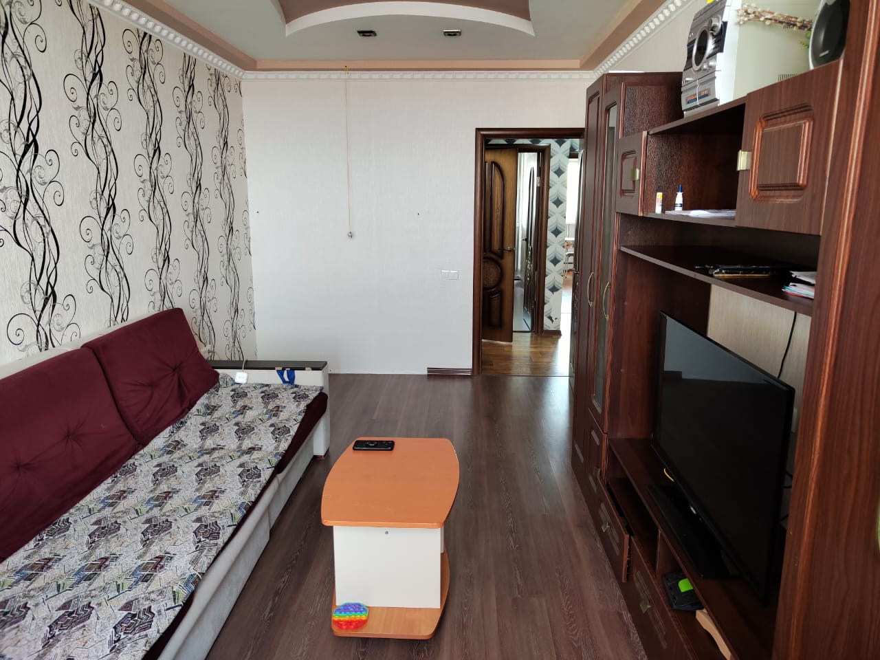 В квартире выполнен ремонт, установлена вся необходимая мебель и техника. Удобная современная планировка с гардеробной комнатой, просторной кухней, 2-мя спальными комнатами ( из одной выход на балкон).