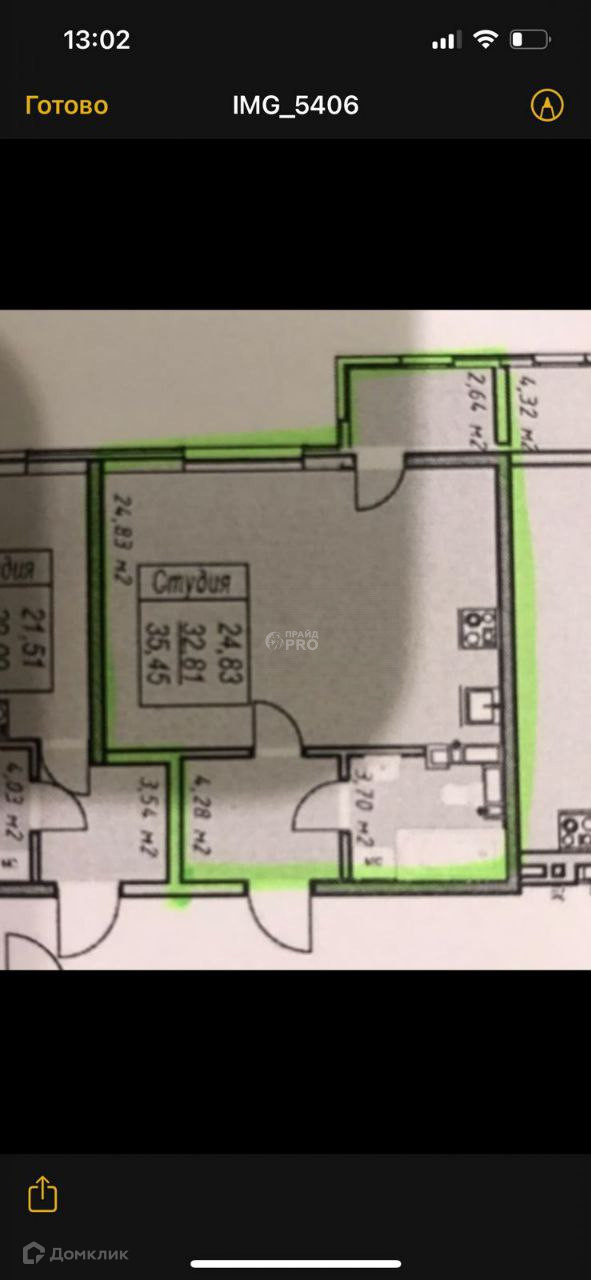 Продается Студия переделана в 1-комн. квартиру 35.5 кв.м. ЖК *ГАРАНТ*