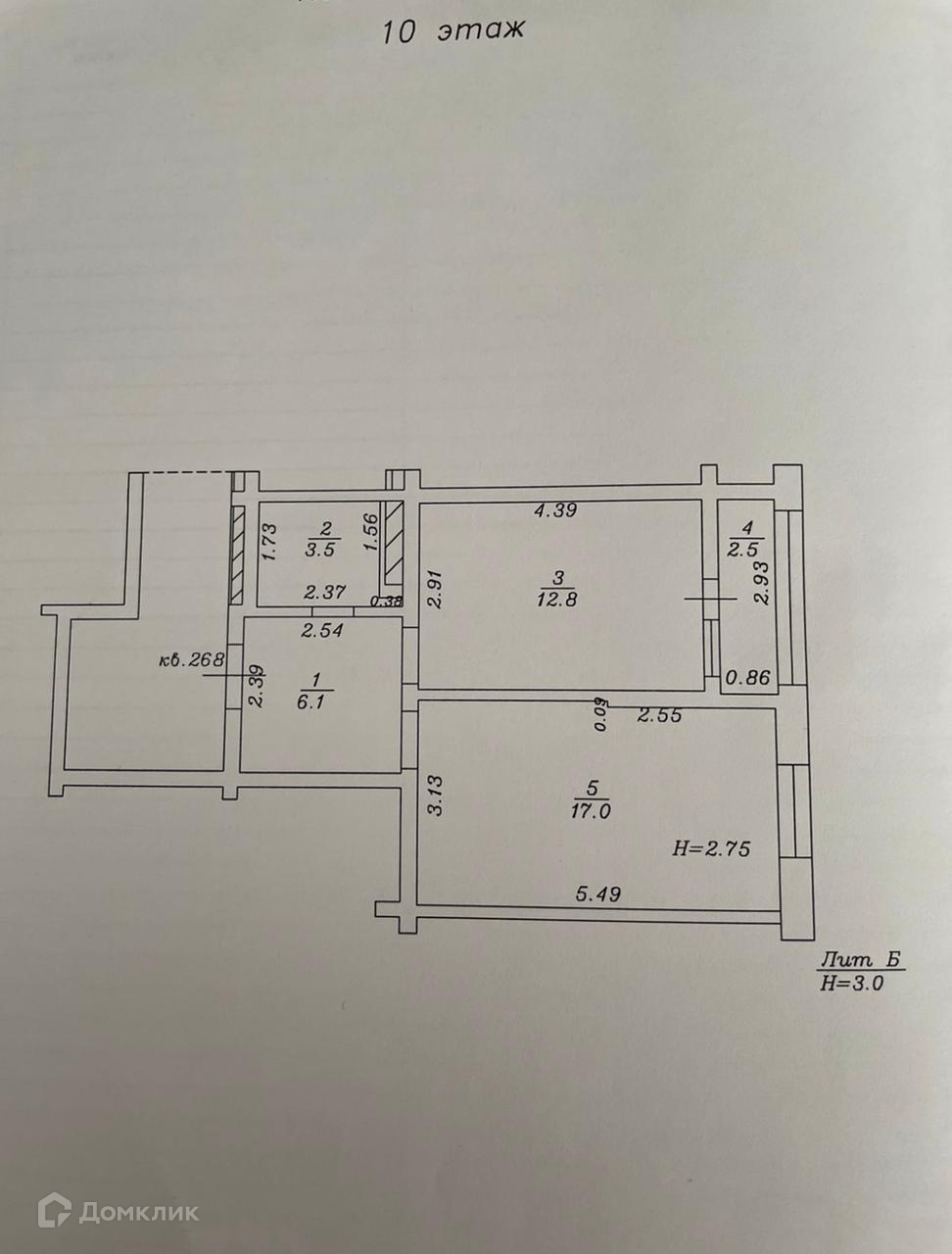 Общая площадь 39 м2
