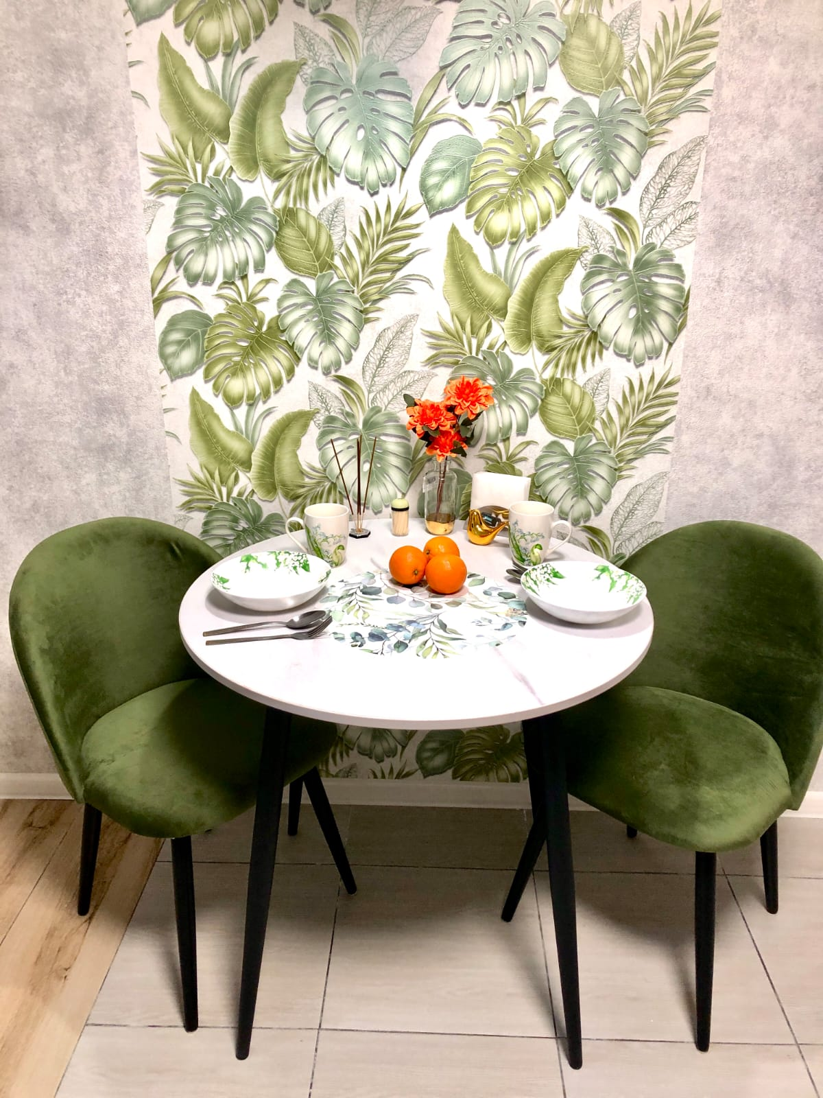 Подобраны  со  вкусом диваны, кресла, столик., портьеры, коврики.