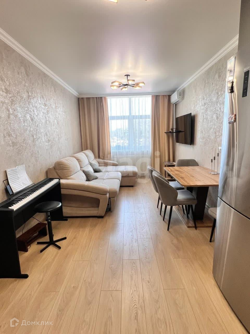 Имеет просторную кухню-гостиную, 2 спальные комнаты, 2 санузла и гардеробную. Планировка идеальна для семьи! Квартира с дизайнерским ремонтом, всё сделано со вкусом из качественных дорогостоящих материалов!