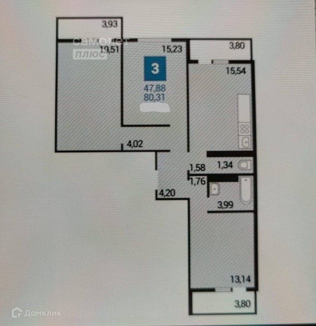 Общая площадь 80.3 м2