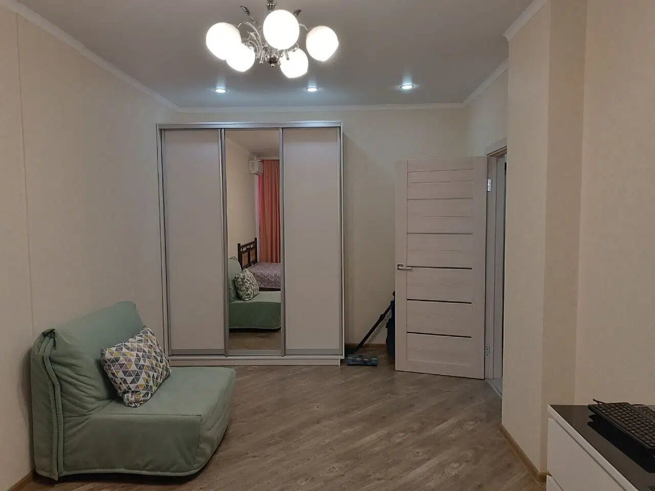 В квартире выполнен качественный ремонт , есть вместительная гардеробная .