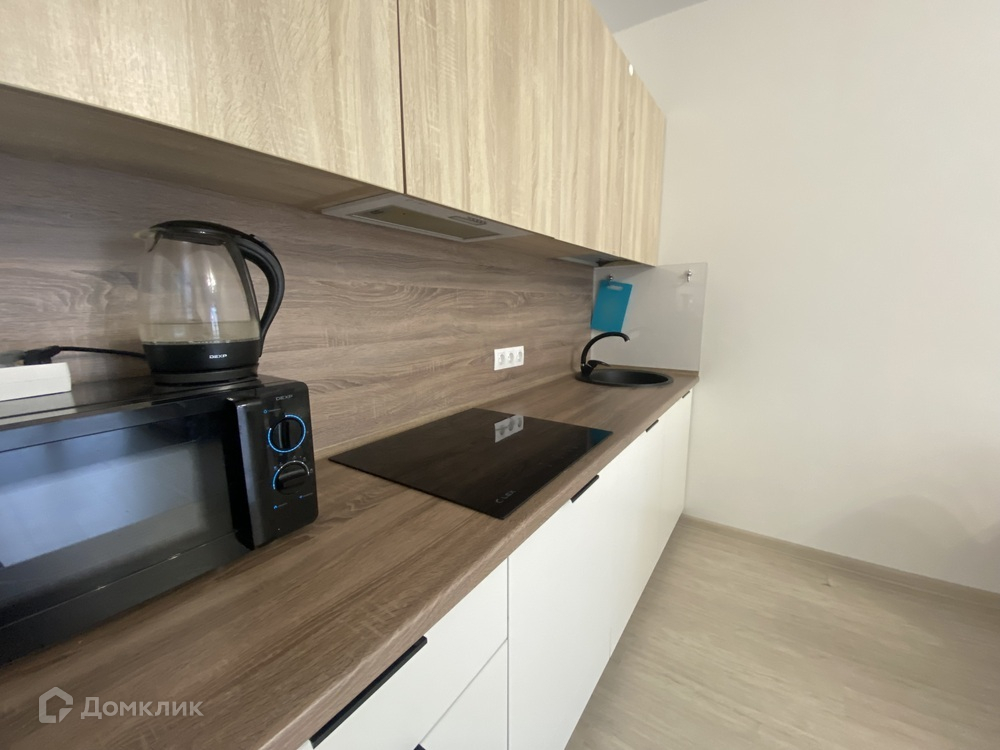 В квартире установлена кухня с индукционной плитой, вытяжка.