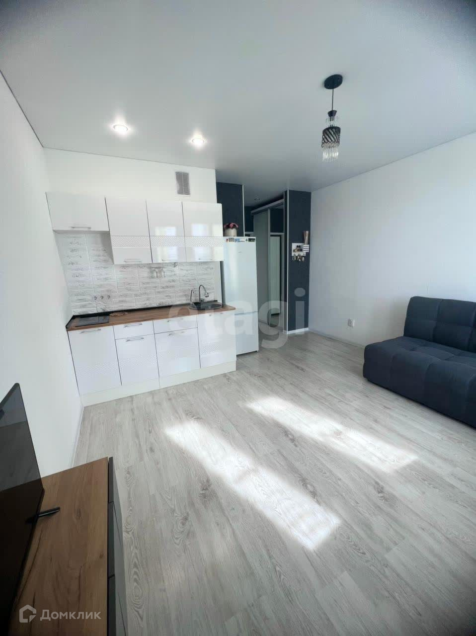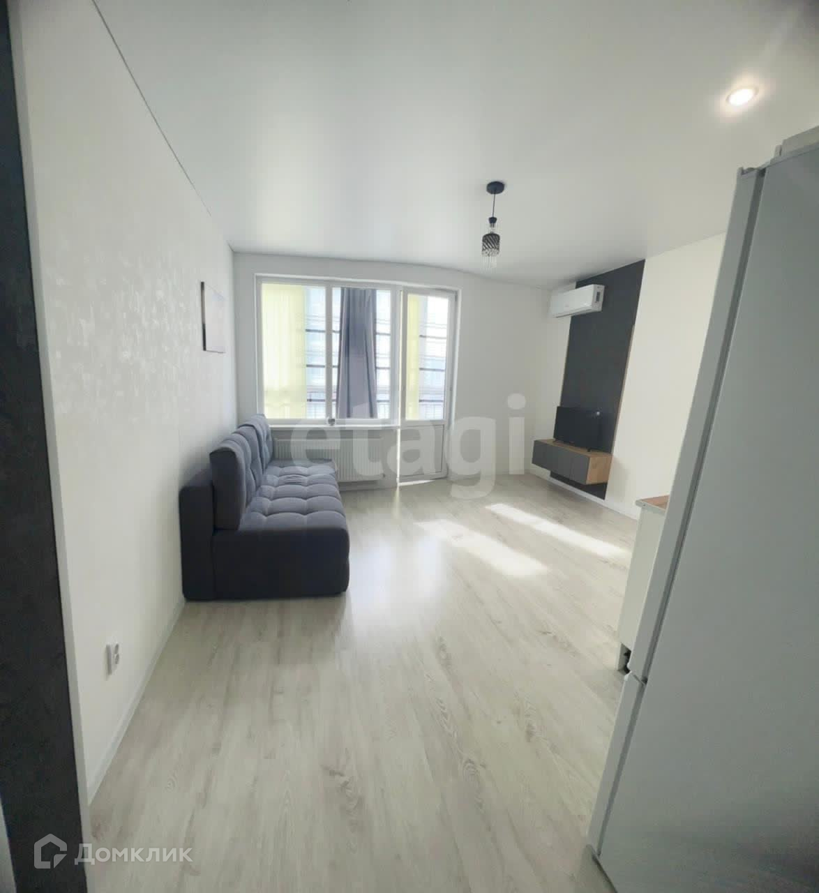 Новому покупателю остается кухонный гарнитур, шкаф купе, плита, холодильник, телевизор и сплит система, мебель в ванной комнате.