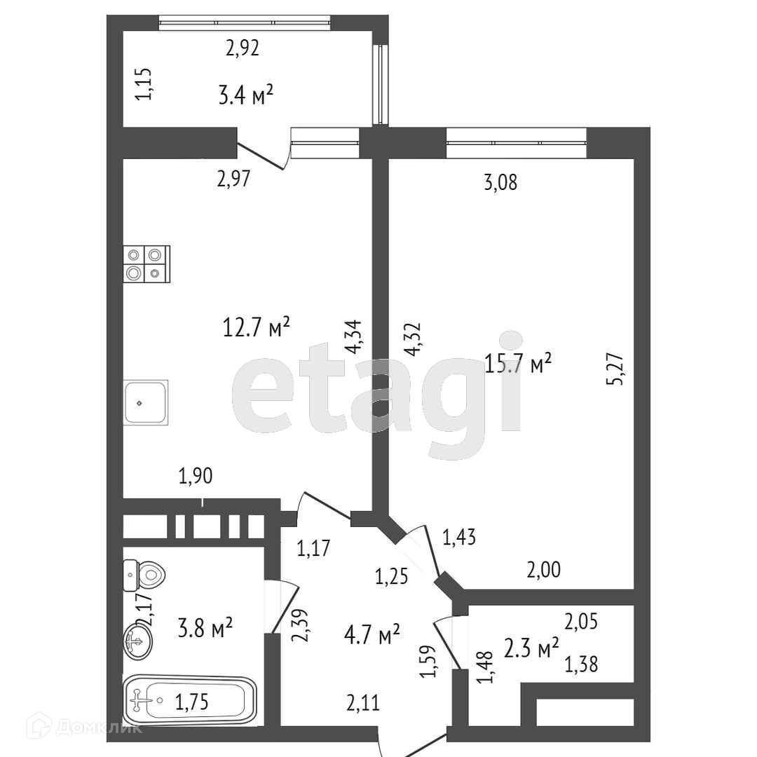 Общая площадь 42.6 м2