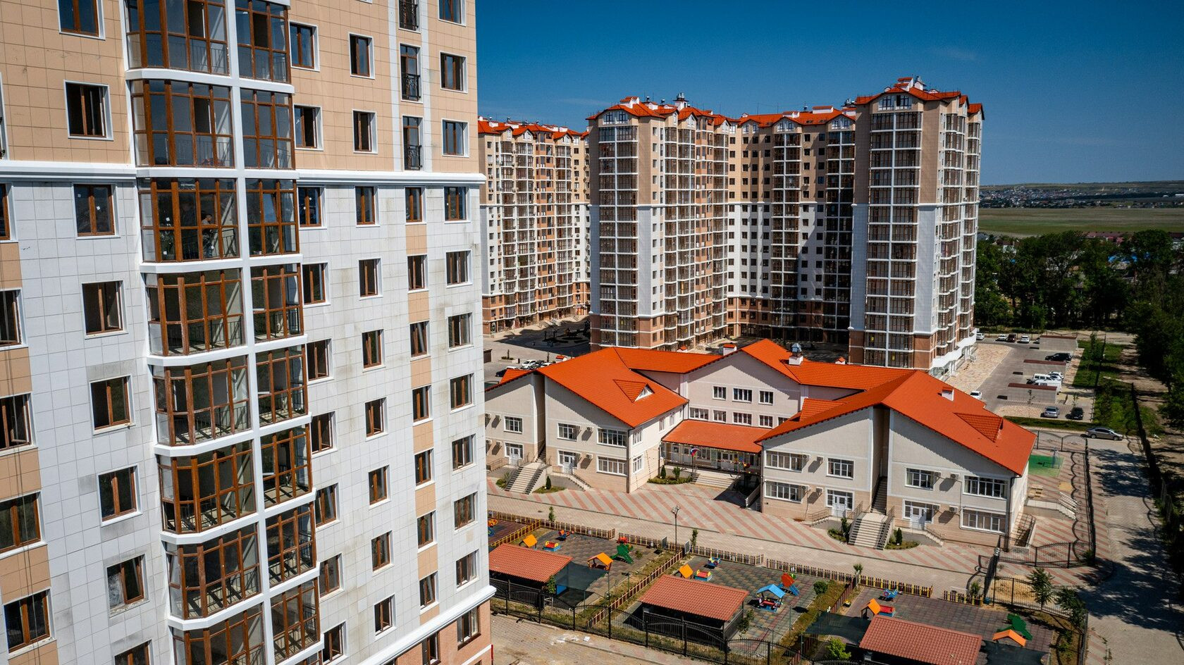 Дорога к морю на машине займет около 15 минут. А ночью жителей и гостей комплекса и его окрестностей восхищает стильная подсветка вдоль Анапского шоссе. Дворы в ЖК «Черное море» свободны от скопления машин благодаря закрытой территории.