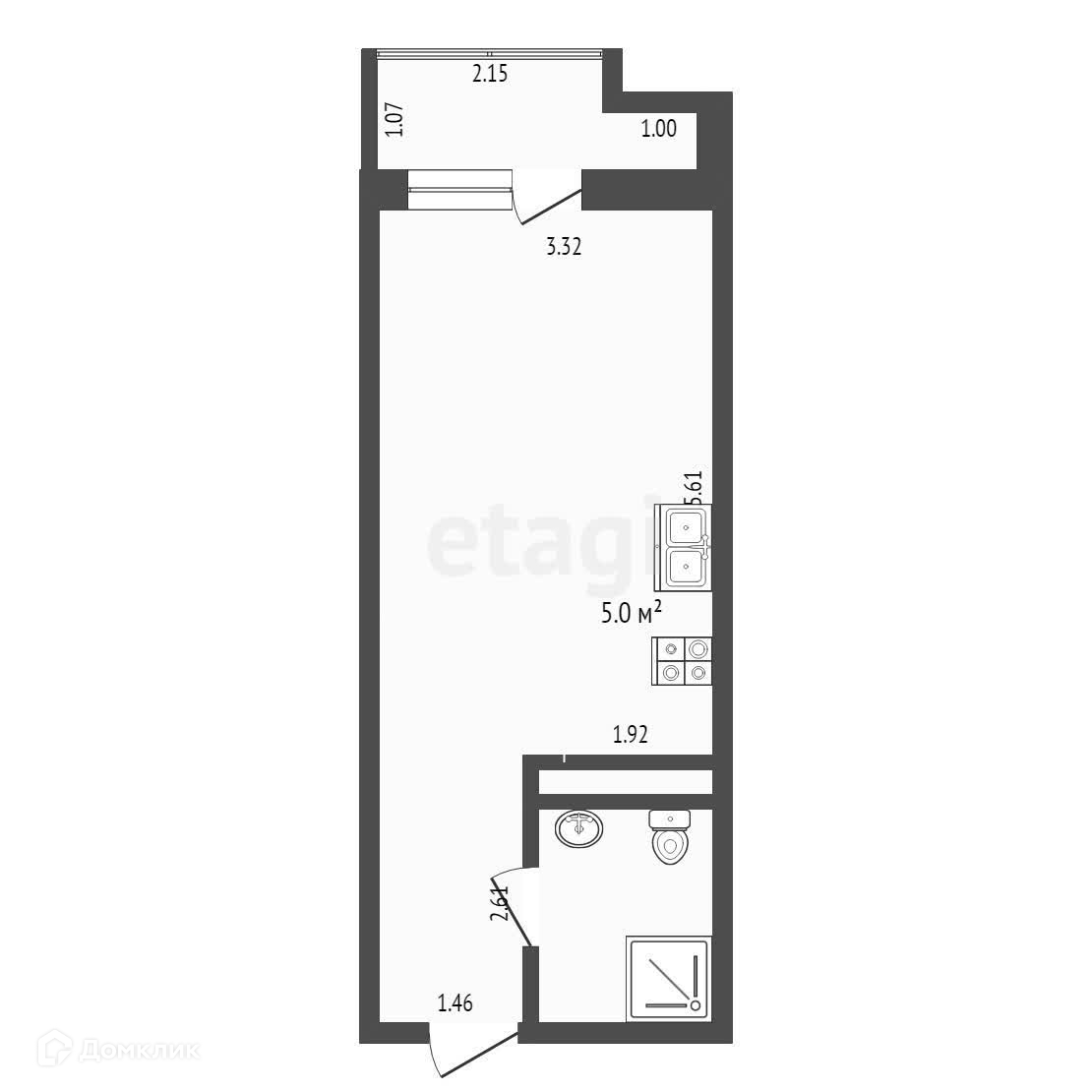 Общая площадь 28.5 м2