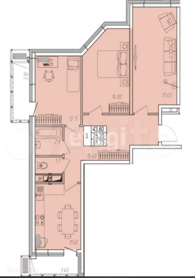 общая площадь квартиры 81,7 кв.м (с двумя лоджиями)!!!