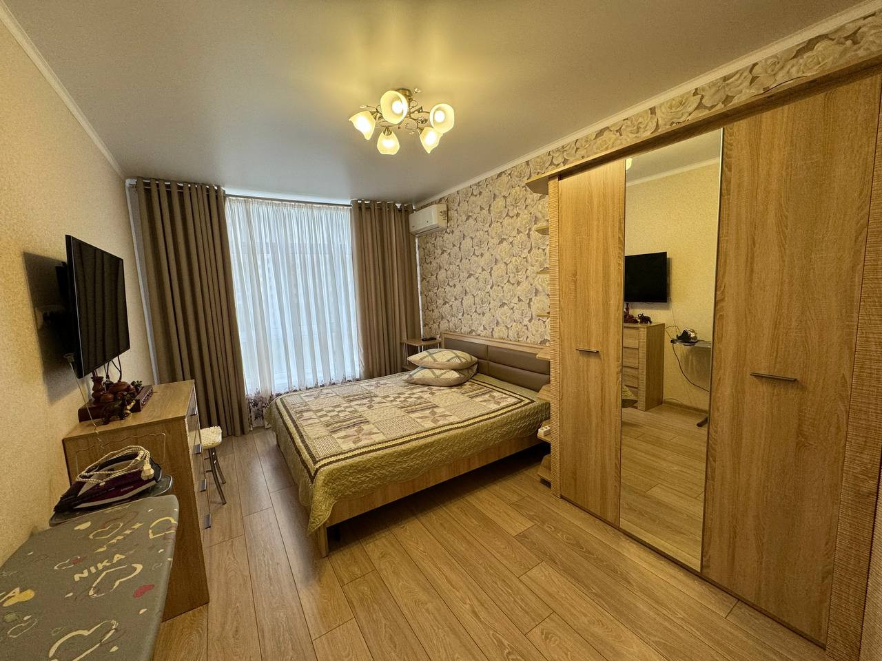 Полноценные две комнаты, изолированные. Кухня с встроенным гарнитуром. Квартира с отделкой в нейтральных тонах. Отличные видовые характеристики. Санузел совмещенный, с душем в комнате увеличенный оконный проем: до подоконника от пола 40 см.