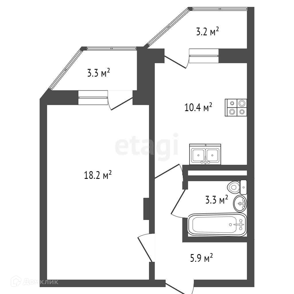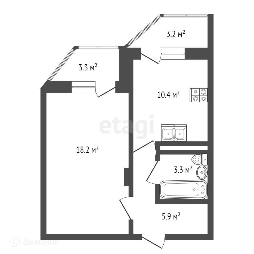 Общая площадь 41.1 м2