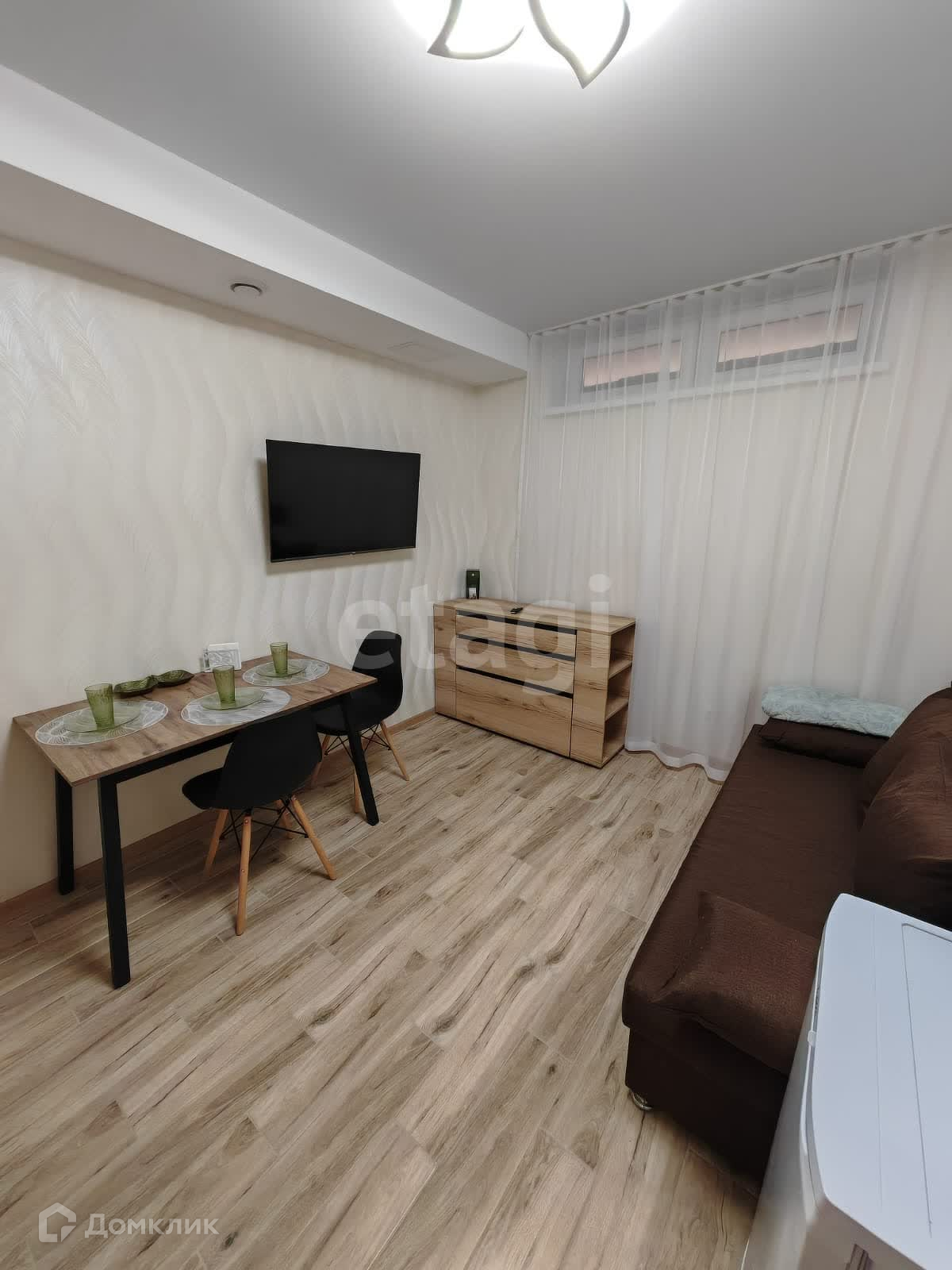 Продается полностью укомплектованная квартира-студия в цокольном помещении в жилом комплексе Лазурный. Продается вместе с мебелью и техникой: новая.