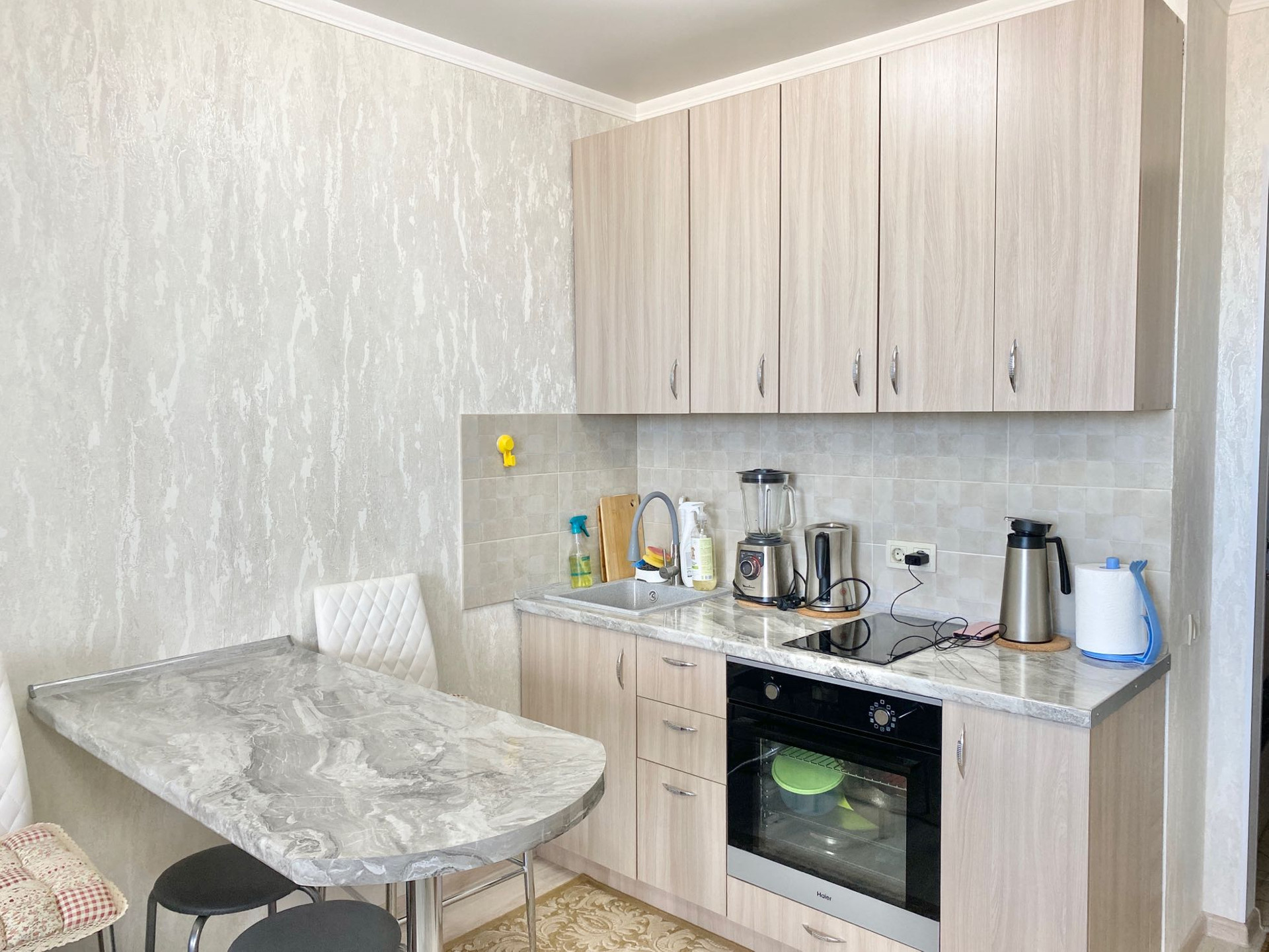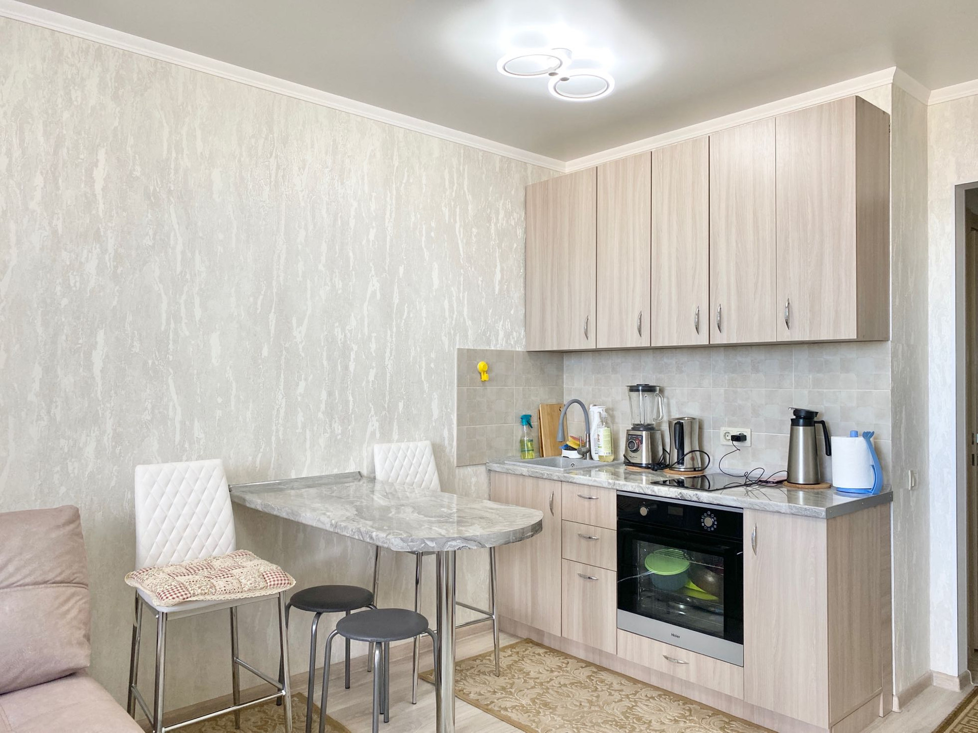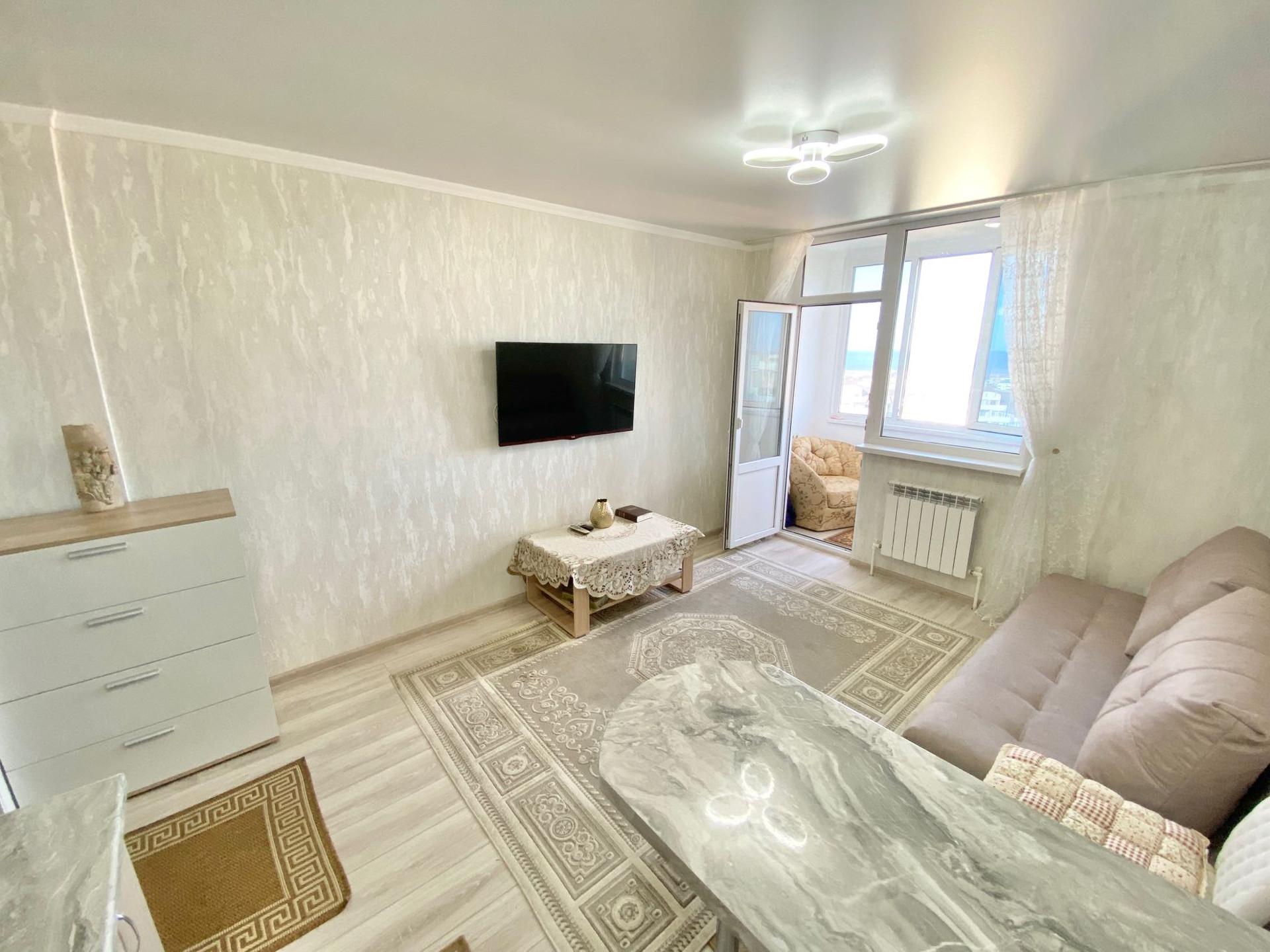Квартира светлая, широкая и вместительная. Красивый вид на море открывается с любой точки квартиры. Особенно приятно пить чай, кофе и любоваться закатами