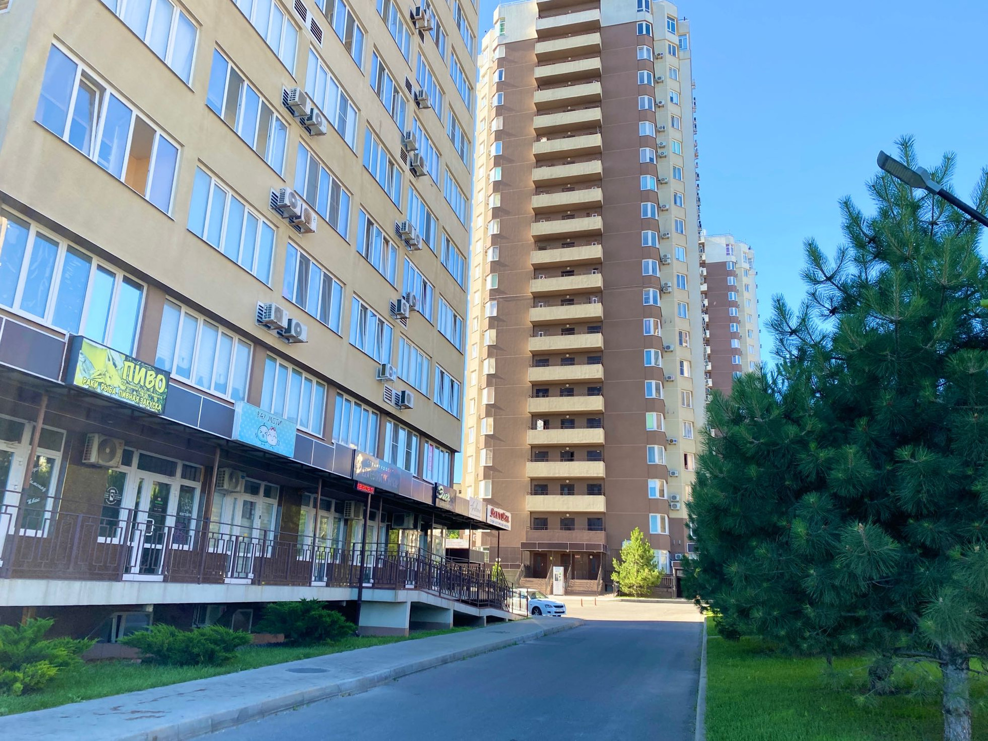 На территории магазины, салоны, аптеки.