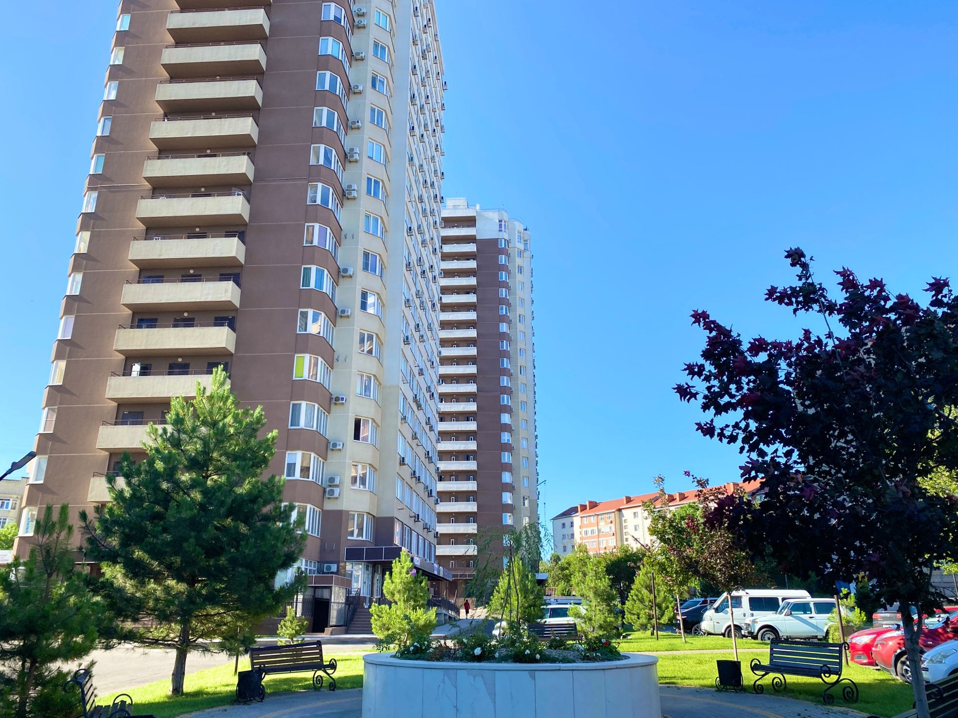 ⛲️ Современный комплекс ЖК Трио с безопасной закрытой территорией. Во дворе фонтан, декоративные деревья, розарии, места отдыха, игровые площадки, детский сад.