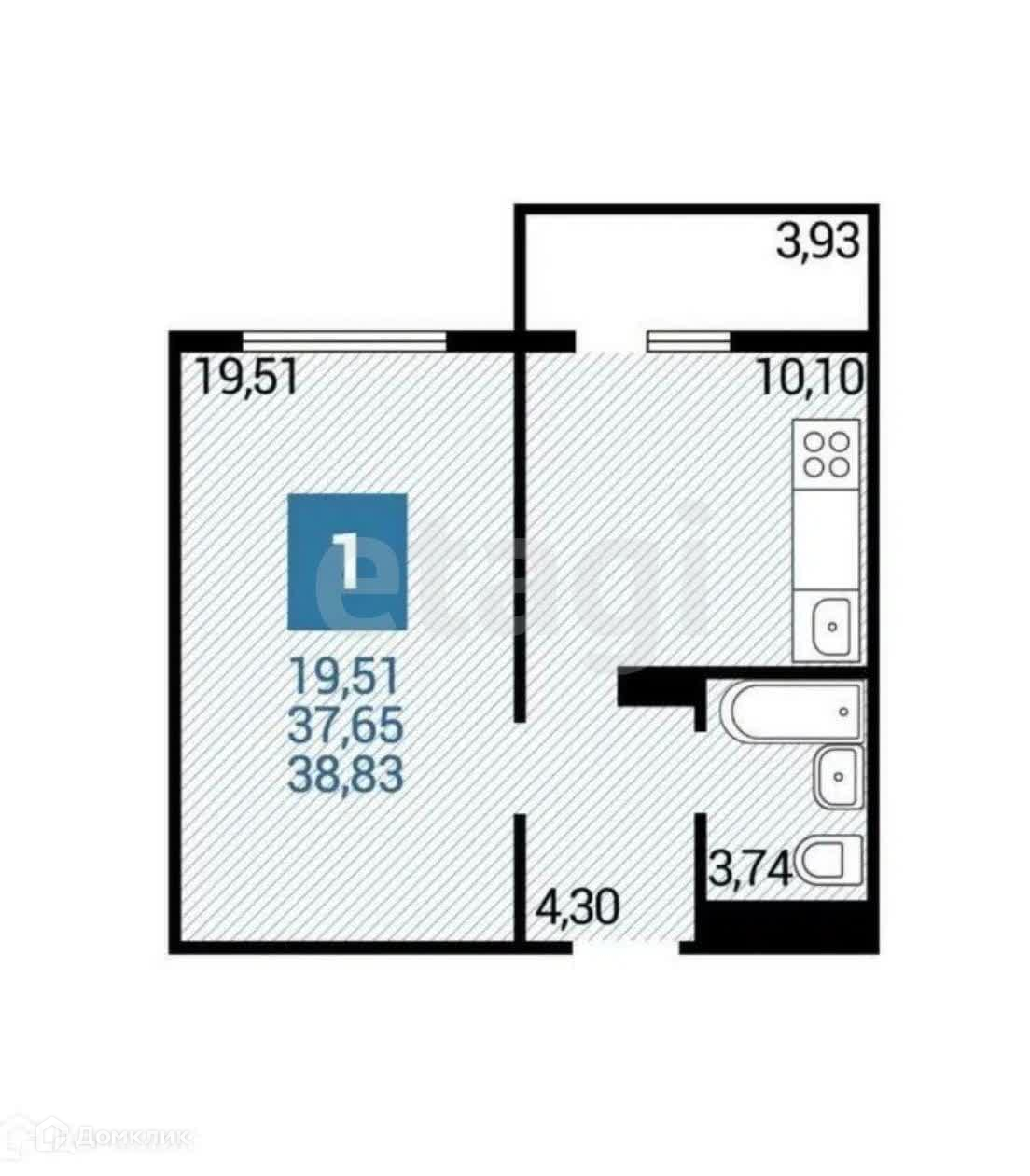 Общая площадь 38.8 м2