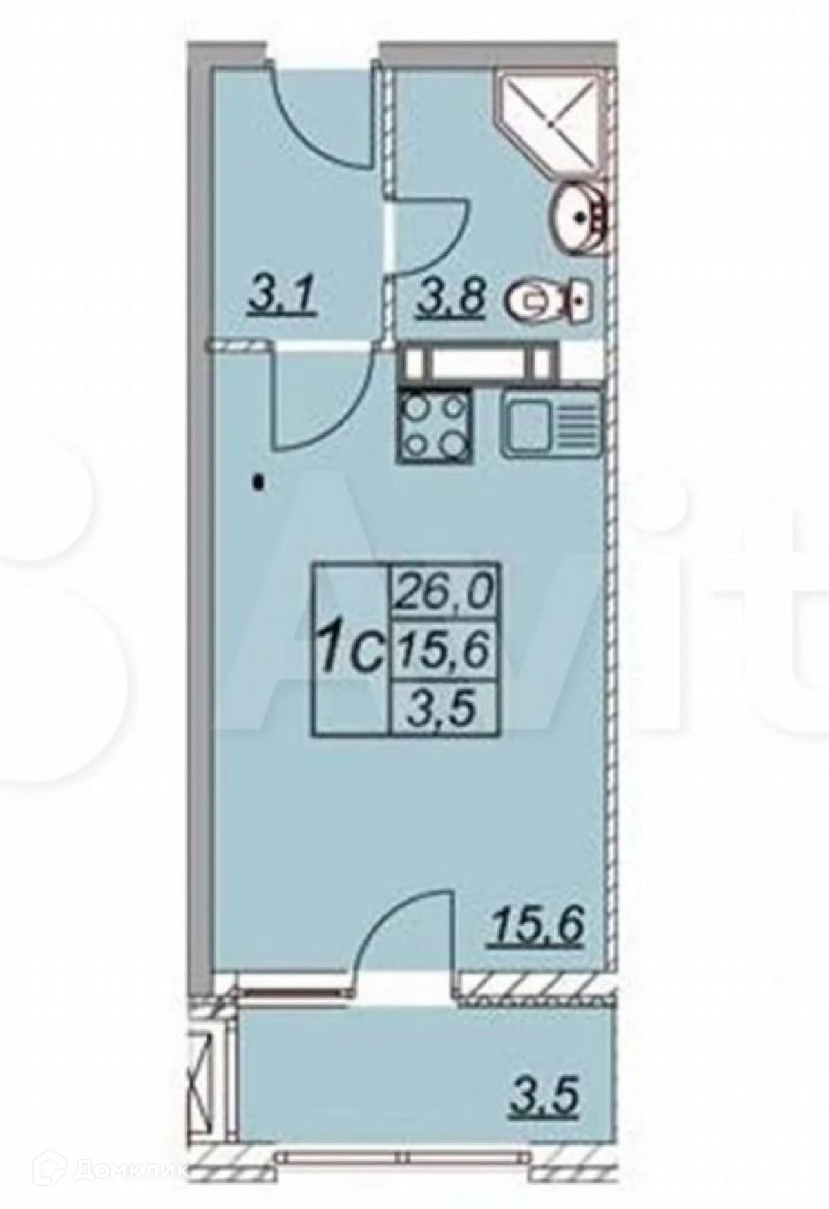 Общая площадь 26 м2