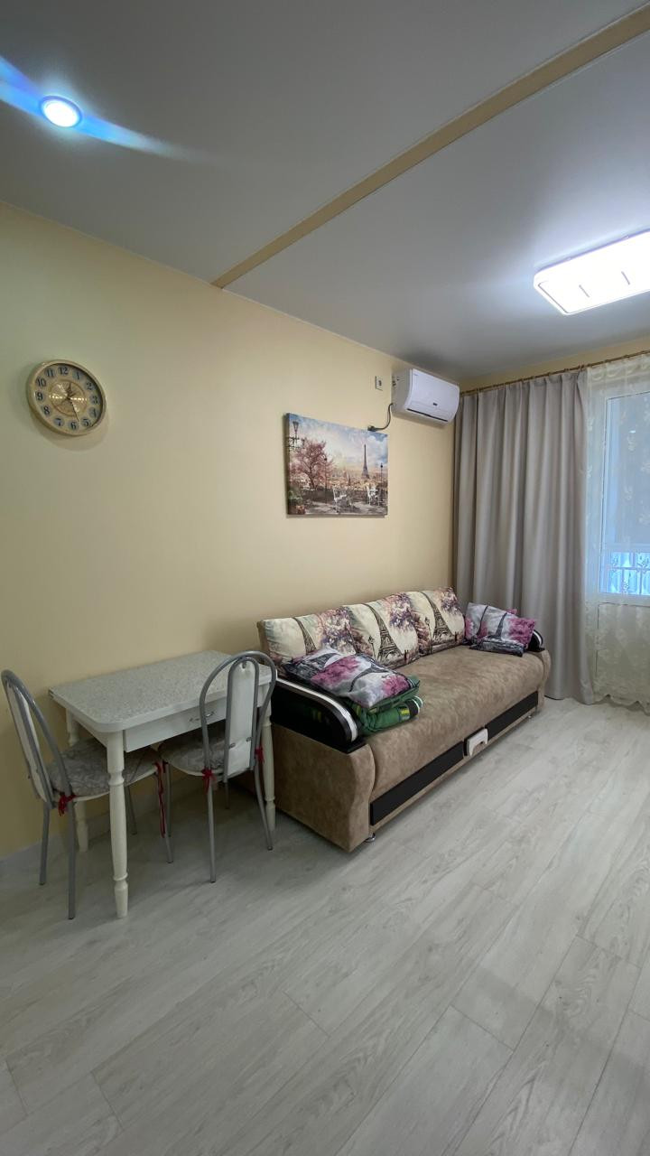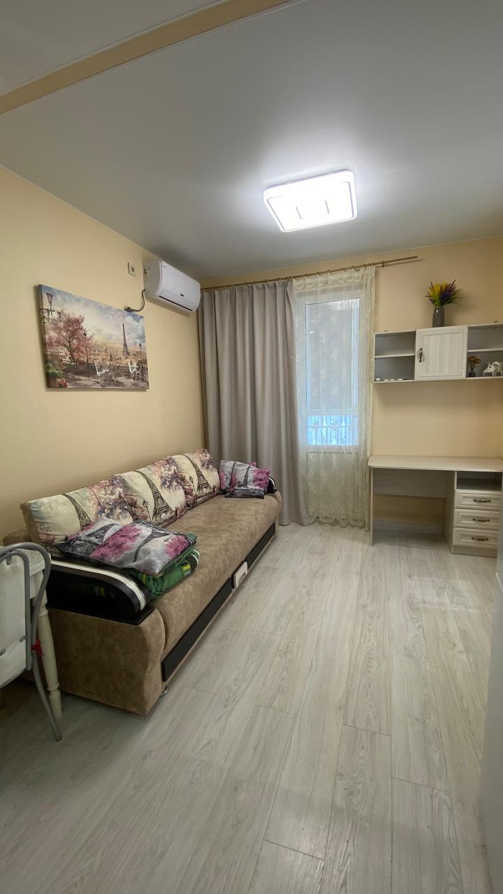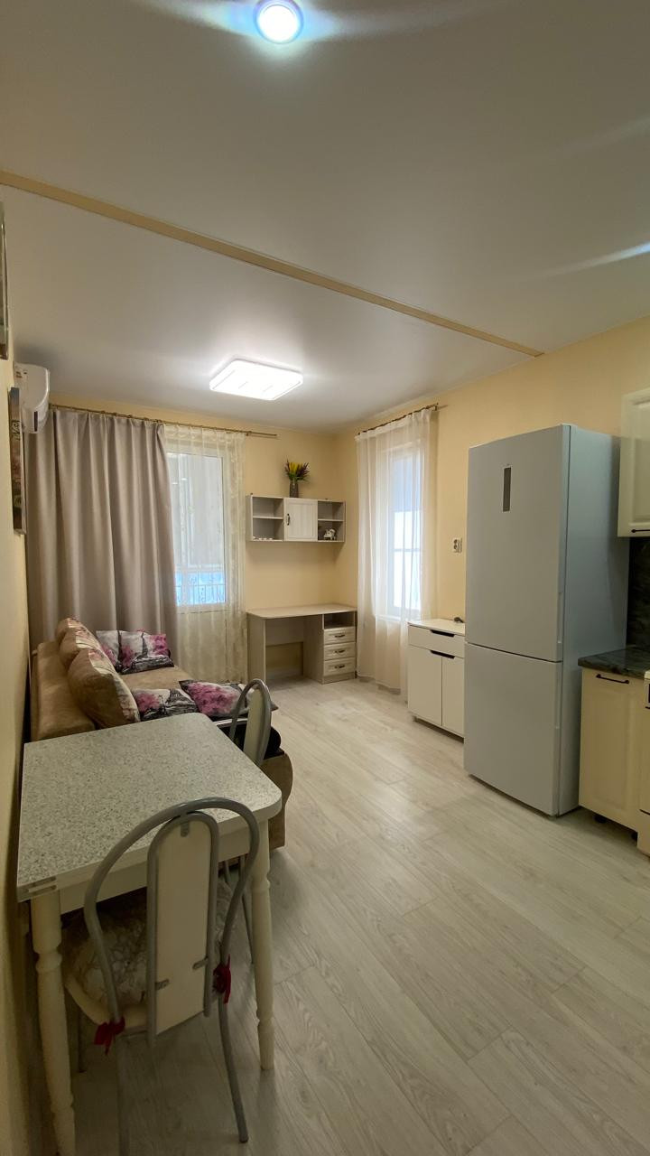 Уютная квартира в европейском стиле (гостинная-кухня, отдельная спальня) с хорошим ремонтом и звукоизоляцией, мебелью во всех комнатах,  бытовой техникой (большой холодильник, плита, микроволновая печь, стиральная машина, кондиционер, бойлер). Квартира в ЖК123, тихий спальный район, рядом круглосуточные супермаркеты, торговые центры, два детских сада в пешей доступности, школы, развлекательные центры. До моря 20-30 минут пешком.