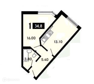 - Общая площадь квартиры 34,8 кв.м.