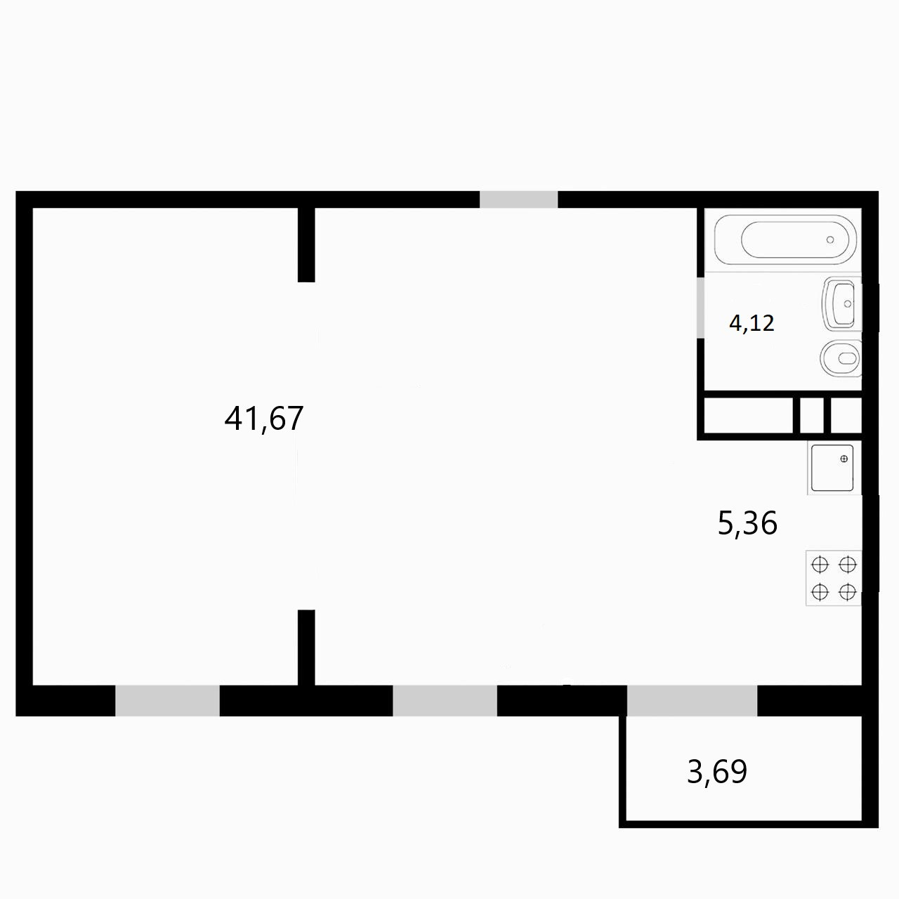 Общая площадь 44.6 м2