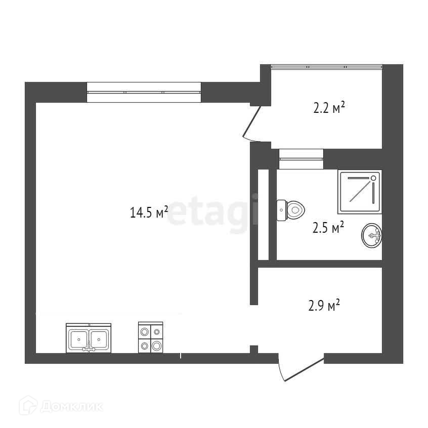 Общая площадь 22.5 м2