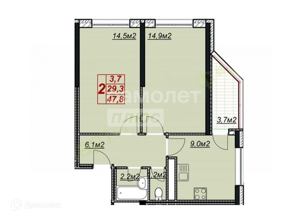 Жилая площадь 29.4 м2