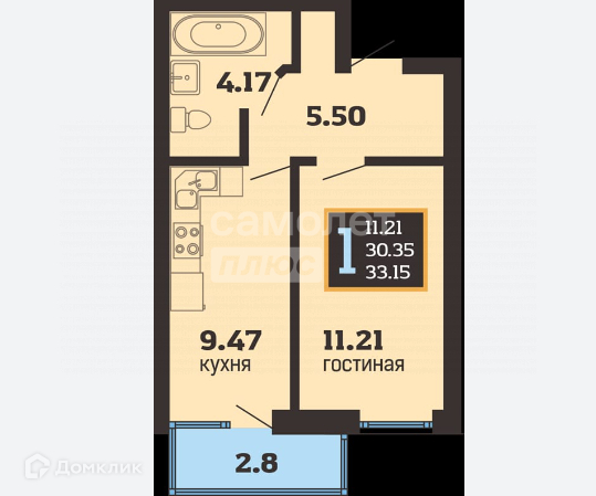 Общая площадь 33 м2